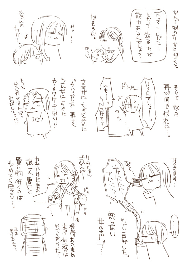 テレパシーも何も、妹の声だけじゃなく弟の声も聞こえたんですが。