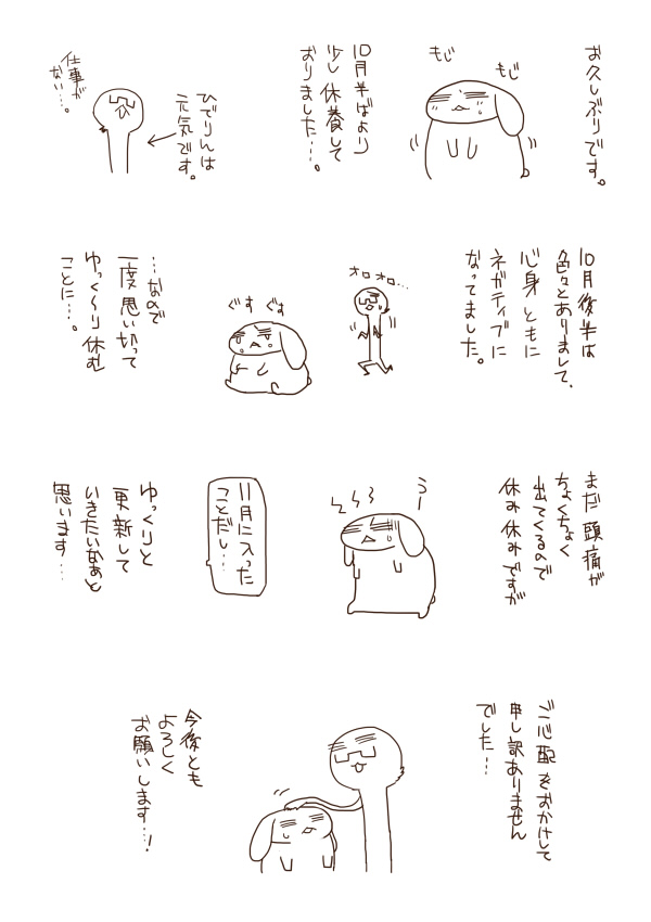 お久しぶりです。ご心配をおかけしまして申し訳ありませんでした…!